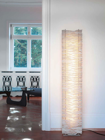 The sculptor Steve Lechot, from the Swiss Jura, is heavily influenced by Japanese culture and, as well as stone, also works with other materials such as parchment and light, as the first drafts of belux one by one demonstrate. With 160 crushed layers for the standing lamp, Lechot has created an exciting interplay of light and shadow.