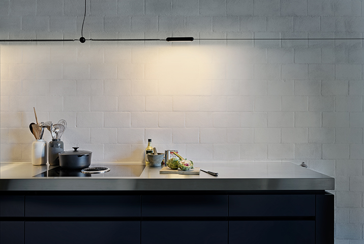 belux hello is an all-round LED lighting tool: This flexible system provides light wherever it is needed, even when the power outlet is in the wrong place, the ceiling of an old building is too delicate to bear a light installation or that very picture in the hallway just doesn’t get enough light. belux hello requires just one tension cable. Power is fed through the spiral cable wrapping around the tension cable, from lighting element to lighting element.