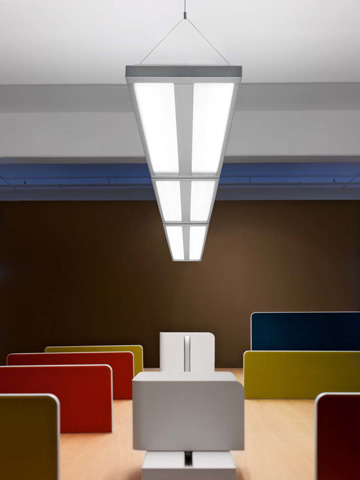 During development, particular attention was given to the aspects of optimising the anti-glare, economy, ecology, flexibility and system integration. The prism technology (K32) directs the direct light on to the workplace without glare and acts as a light window. In addition, the lights can be arranged across or along the line of vision, which allows architects significantly greater freedom. The high-quality parts of belux flat are made of die-cast aluminium.