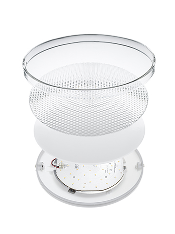 belux o-lite is a compact wall and ceiling light suitable for universal use, whose structure and form corresponds to the clarity of its light. The layering of numerous diffusers and light-guiding shells produces a brilliant, optimally-dispersed LED light with reduced glare. belux O-Lite can be used both inside and outside (IP54).