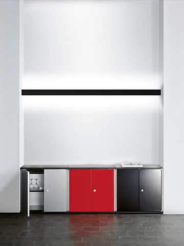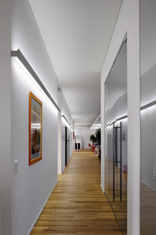 belux meter by meter is used as light by the meter in architecture. belux meter by meter can either be employed as indirect light with a cover shade made of anodised aluminium or satinised synthetic glass. A combination of direct and indirect light sections is also possible. belux meter by meter can be employed horizontally from wall to wall or vertically from floor to ceiling. Various coloured and opaque films allow individual colouring and light guidance. These can be inserted subsequently at the front or at the side. Texts can also be printed on films (transparent covers) or laser cut (aluminium covers). belux meter by meter integrates optimally into the most diverse spatial situations such as corridors, reception halls, sales outlets, restaurants and hotels as well as in home areas. Mirrors, doors and passageways can also be framed with this light strips. There are virtually no limits to the possible applications of belux meter by meter.