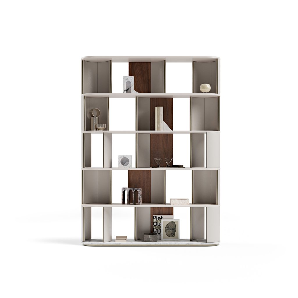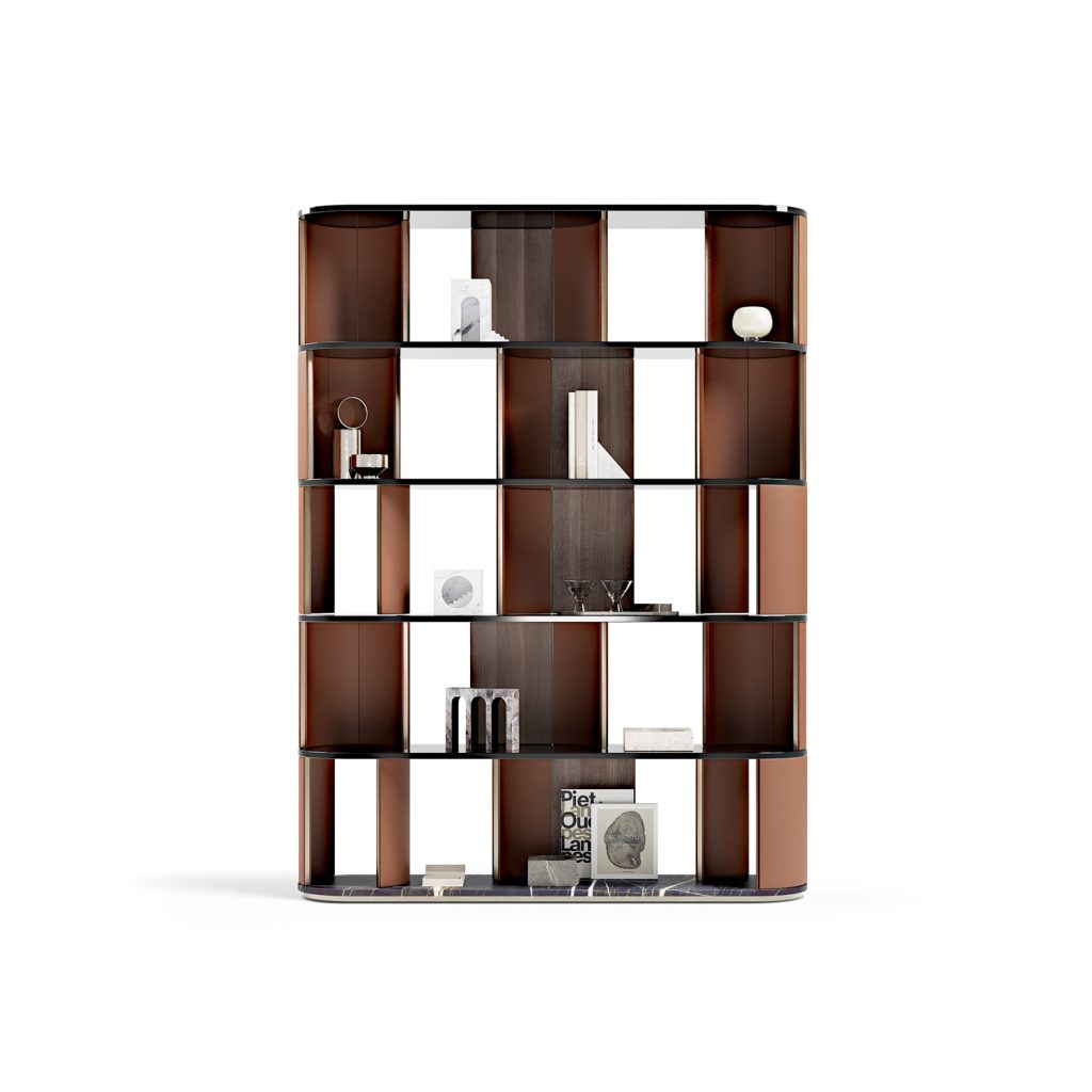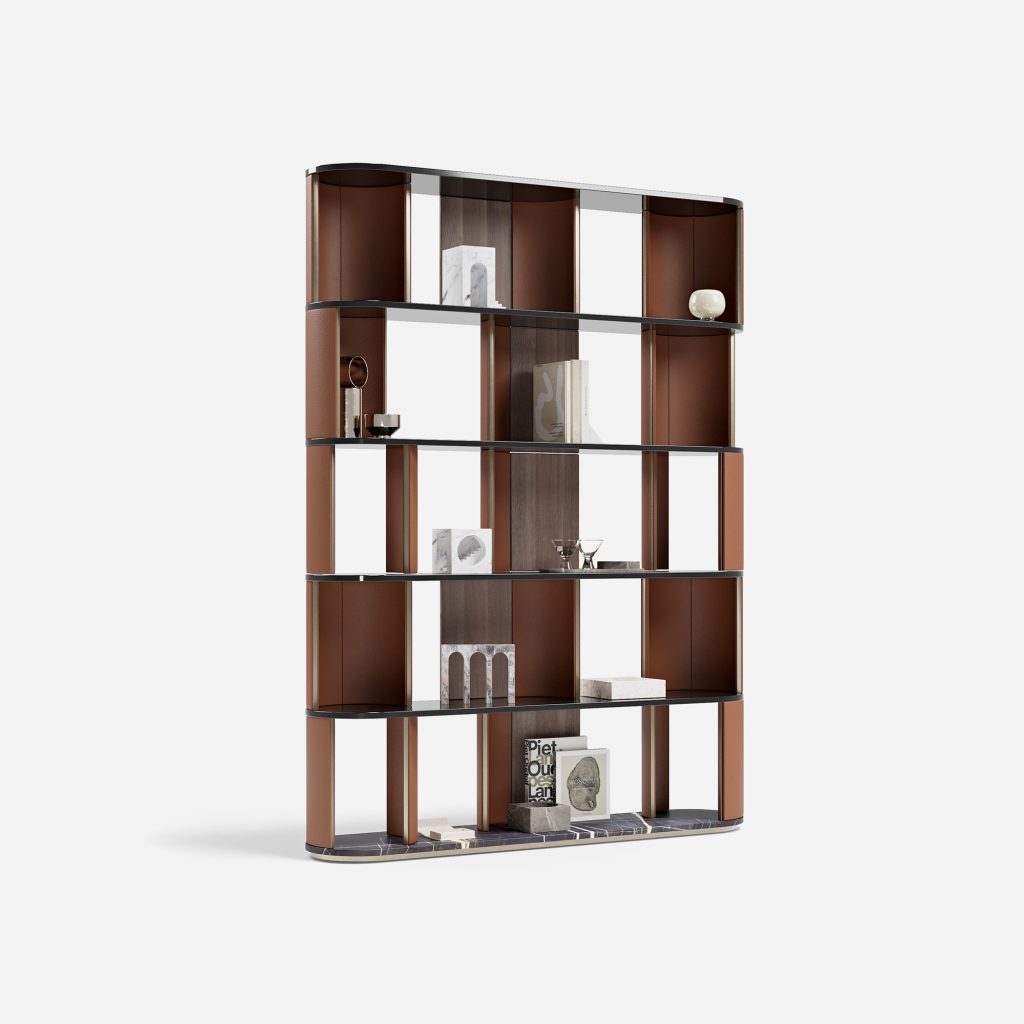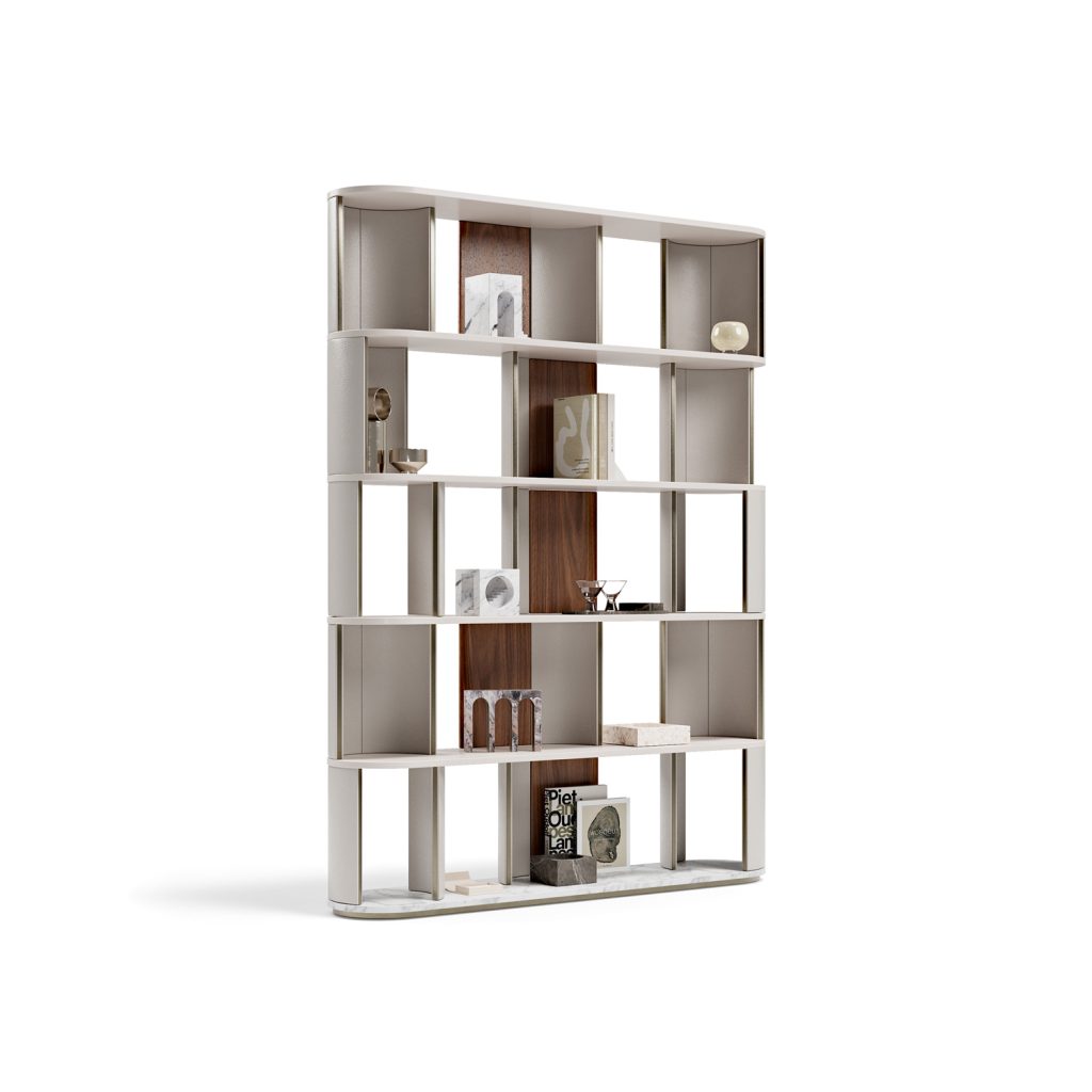 Pannelli di fondo e ripiani disponibili in essenza o laccato.