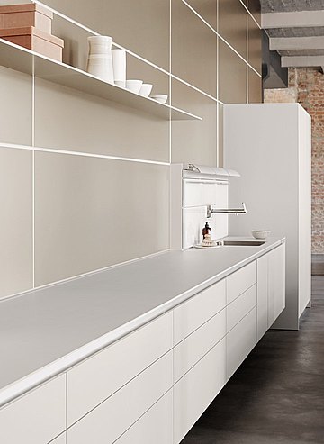 Foot-supported elements can accommodate any weight with ease. The island shares b3’s aesthetic sense of lightness.