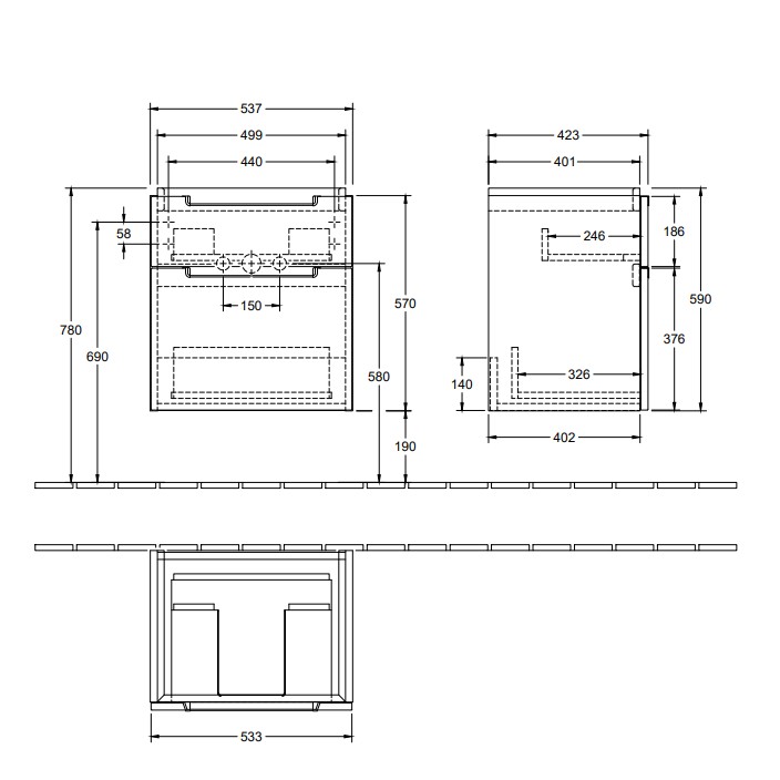 Vanity unit with storage space right under the bathroom sink