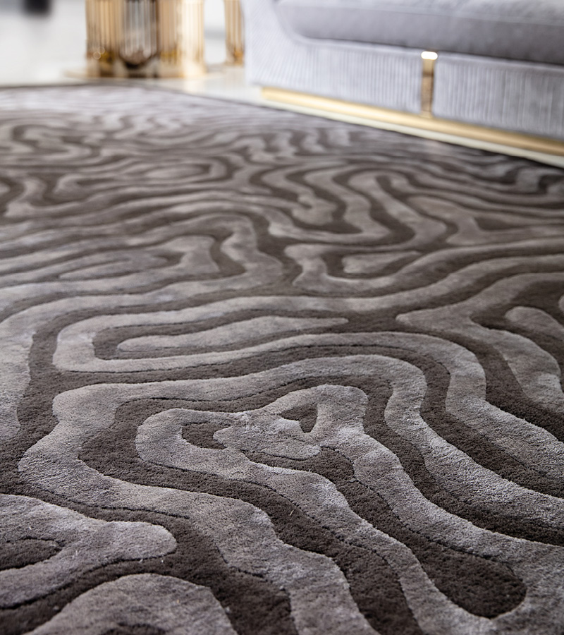 Hand knotted carpet in combination of wool & 100% silk.Custom made.