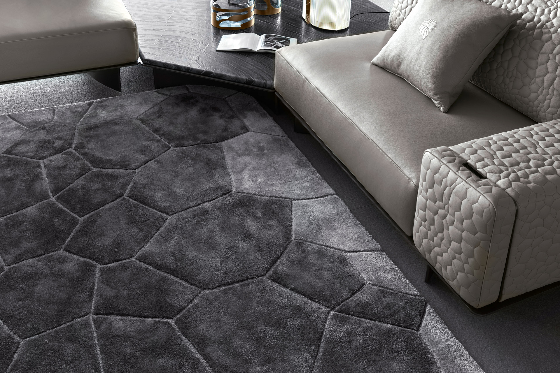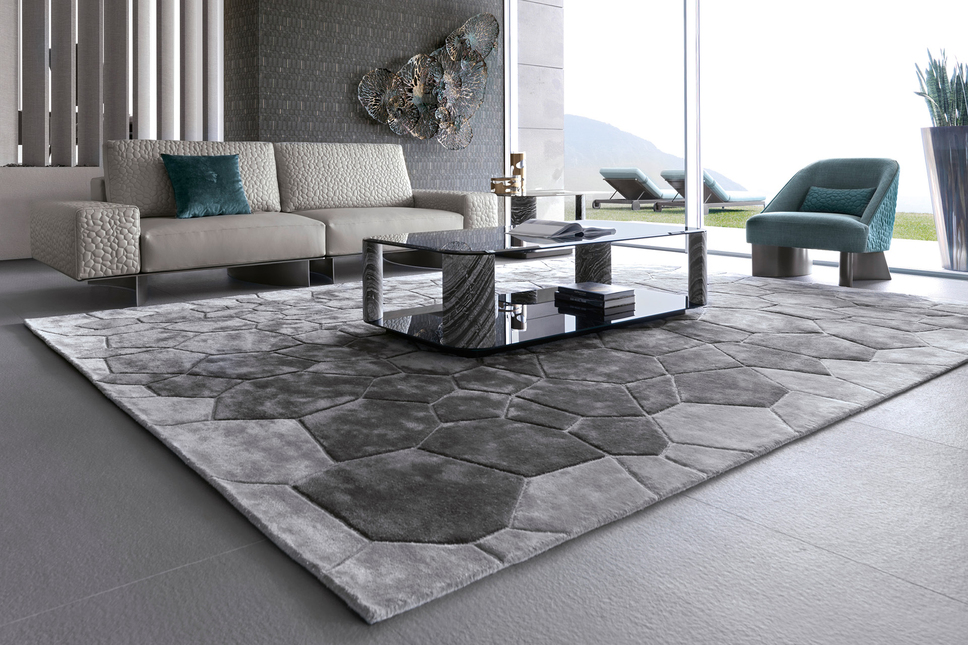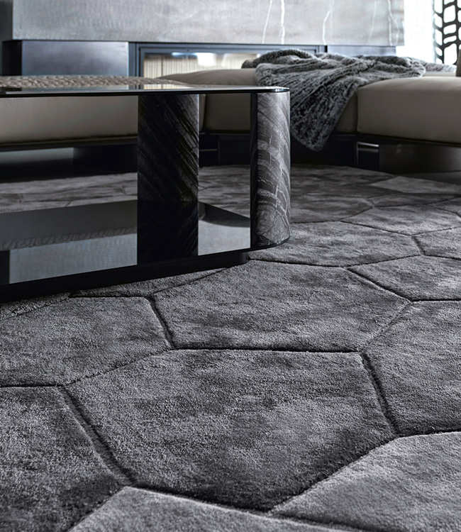 Hand tufting carpet in combination of wool & 100% silk. Custom made.