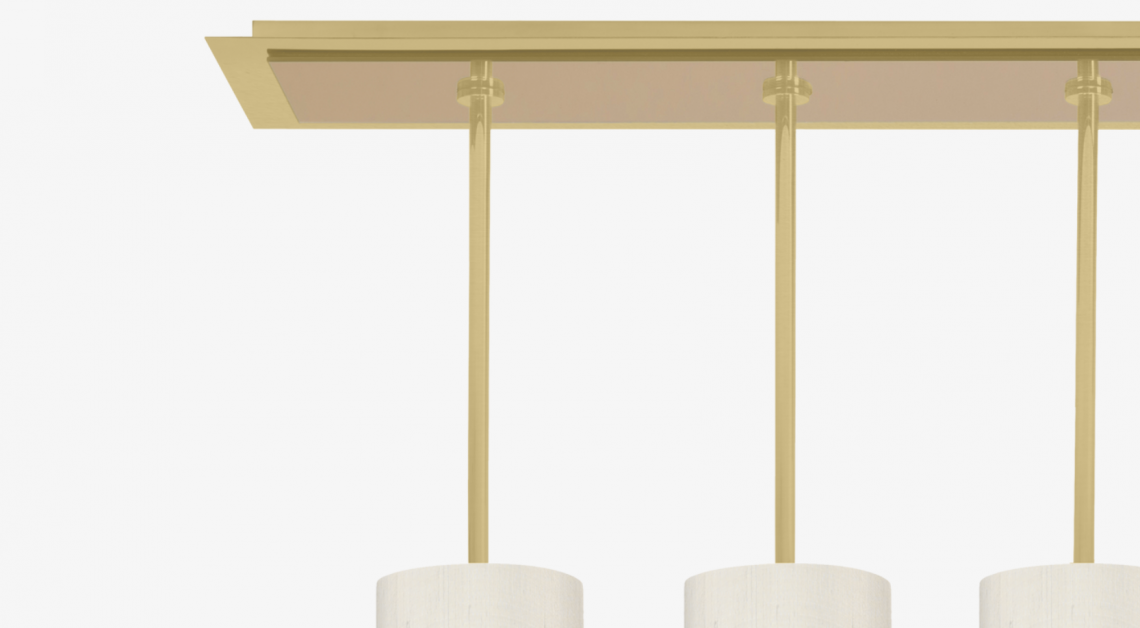 A neat row of seven slender shades in double silk permeate the NEPAL ceiling lamp with an orderly elegance that's visually arresting.