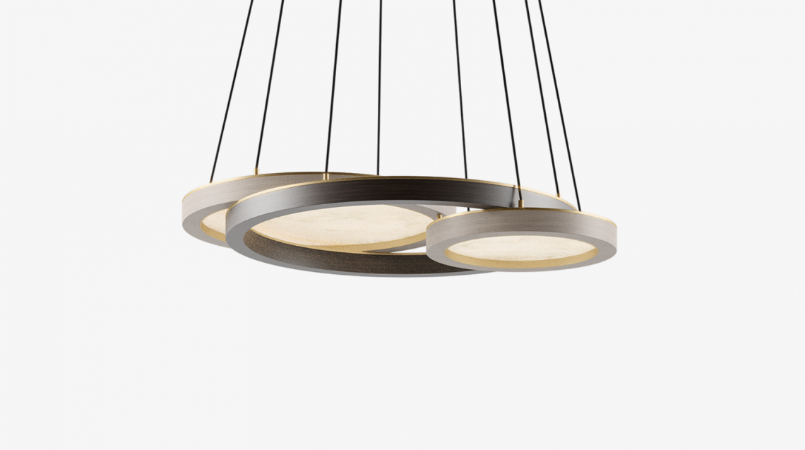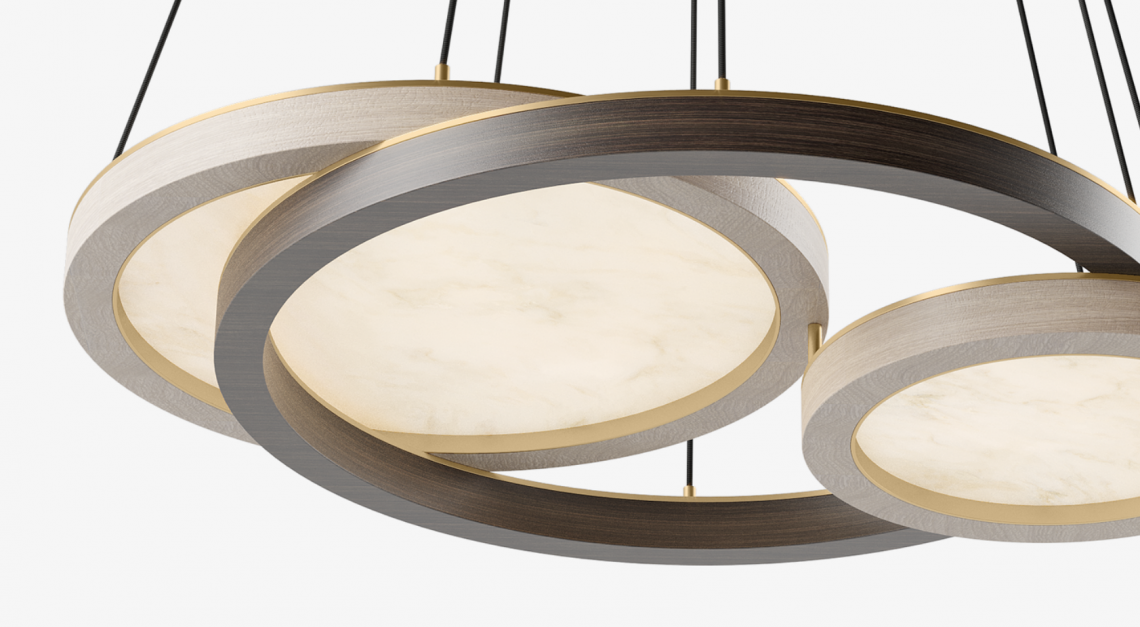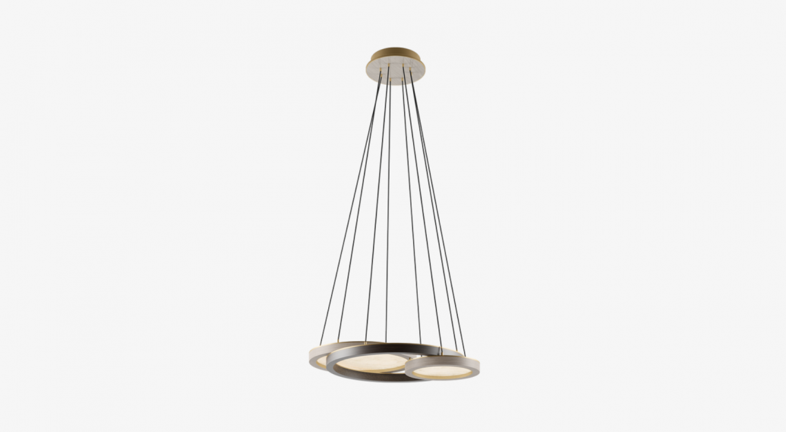 Sculptural yet minimal, the RENNES Ceiling Lamp consists of a trio of overlying solid wooden rings edged with brushed brass.