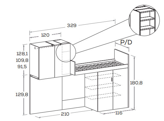 Sospeso o a terra, il comodino Base può avere uno, due, tre cassetti o un cassettone. E c’è anche nella versione con anta Soft imbottita!