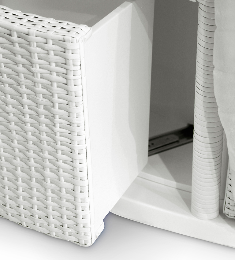 The top structure is fixated on the ceiling and it’s made of wood coated with synthetic leather, the passenger basket includes several storage compartments made by handmade wickerwork. The ropes are made in fiber silk and the exclusivity of the details is guaranteed by the appliance of gold leaf.