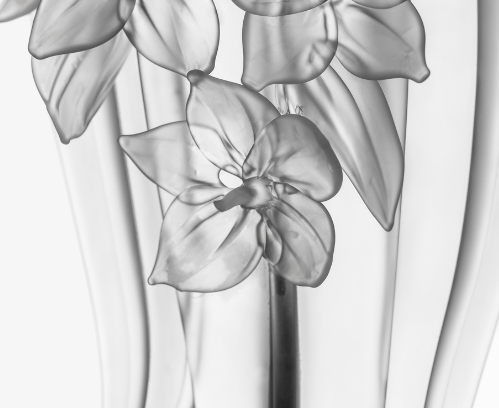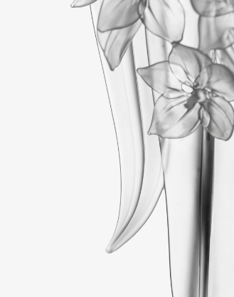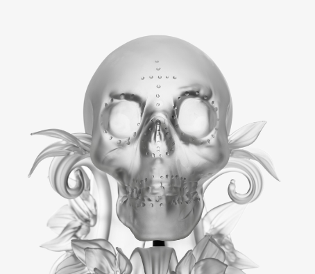 Morana doesn’t hide her scary face – after all, she is the embodiment of a soul of a deceased woman that came to Earth to celebrate with her former family Mexico’s festival of the Dead. The sandblasted skull with a dotted cross on its forehead is the centerpiece of a statue garnished with delicate flowers. Macabre yet fascinating, the glass statue follows the onlookers with a magnetic, mystical gaze.