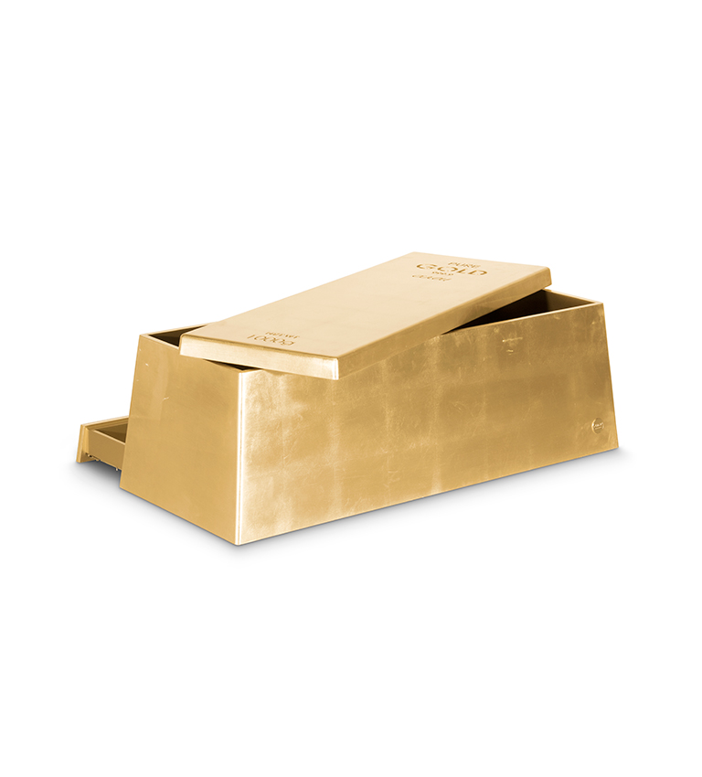 This exclusive toy box is built on wood, lacquered with metallic paint and has gold leaf finishes. It features a rotating cover and a secret compartment, for the most treasured kids’ goods.