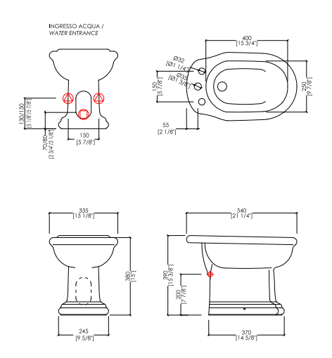 Classic taste and fine English porcelain for a bidet with external irrigation and 1 or 3 holes that perfectly combines the love for tradition with maximum practicality. Being characterized by a great formal sobriety and a surprising harmony of proportions, it fits naturally in any design context.