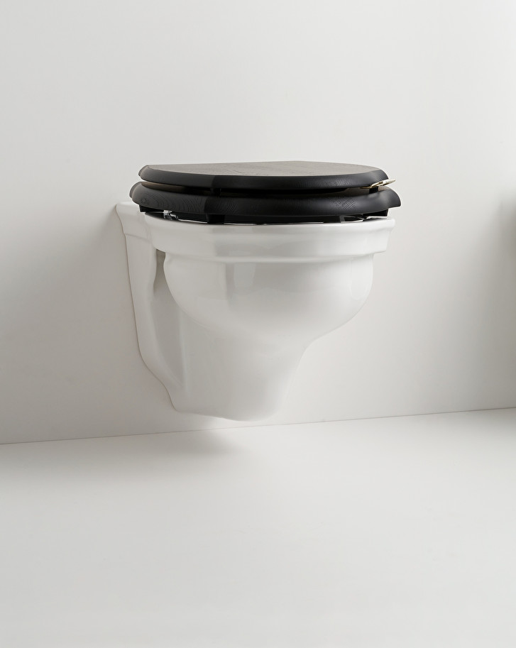 The quintessence of classicism for a wall-mounted W.C. pan in fine white porcelain, inspired by the purest British style. It can be coordinated with a large collection of toilet seats in different materials and colours.