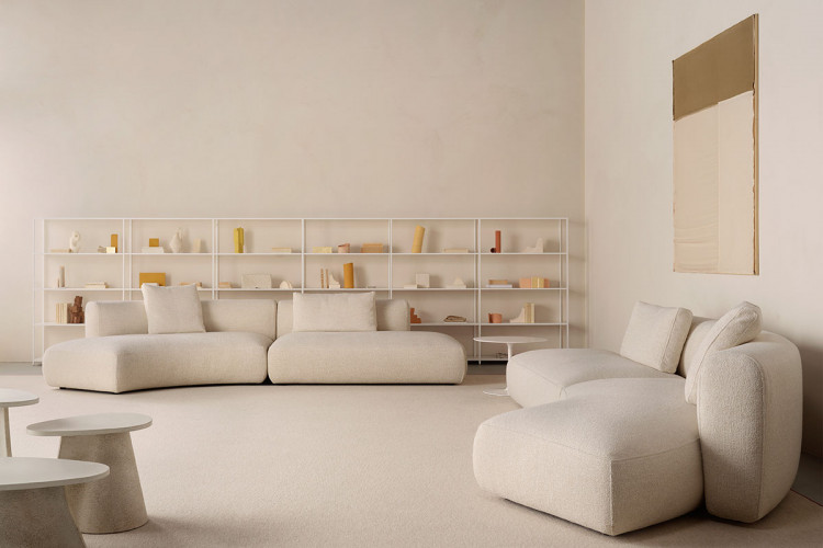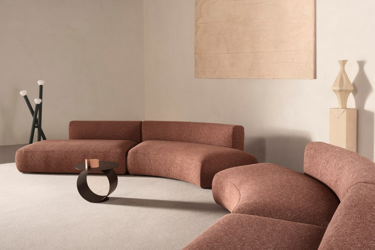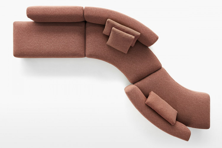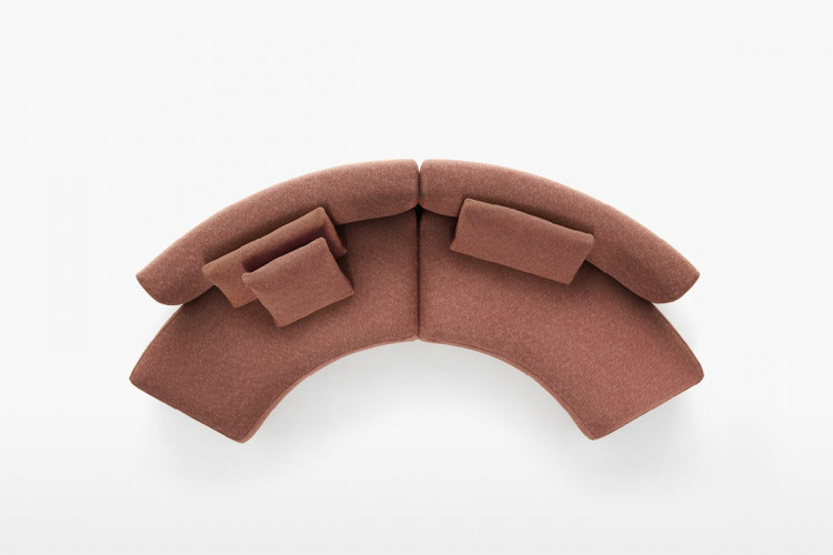 Rota carries the most classic of the MDF Italia padded elements, Cosy sofa, towards a style inspired by soft lines and even warmer. In addition to the existing modules characterised by seats of different depths and lengths and the newest island elements, a new version with a curved base and backrest is added, ideal for creating ideal to create an atmosphere of conviviality thanks to its dialoguing faces.