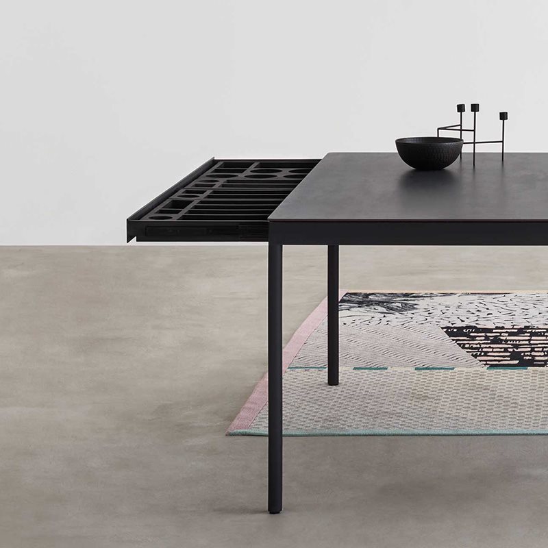 Revisiting of an historical Desalto product, Icaro 015 has a more contemporary, simpler look. A range of tables, low tables and console which include pull-out drawers, practical elements that take nothing away from the design's unfussy beauty.