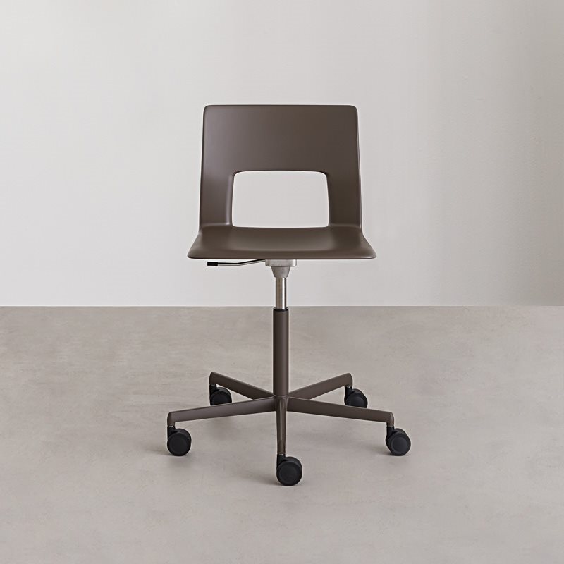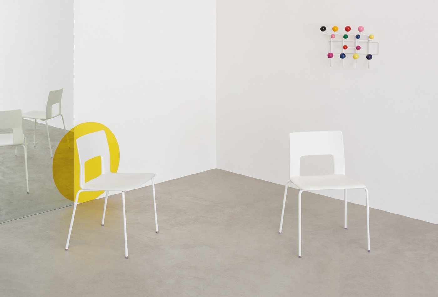 Kobe's BAYDUR? shell is all about eco-sustainability. Baydur? is a high-performing, strong and rigid polyurethane. The result is a very ergonomic chair: the flexible backrest adapts to any posture. Available in new trendy colours. Seating system and barstool with shell of BAYDUR?, with or without armrests. Frame with 4 legs of steel tube, steel rod or swivelling base with adjustable height.