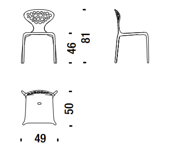 Design polisensoriale, linee da accarezzare, da leggere al tatto e da ri-elaborare continuamente. Le forme sinuose si irradiano dal telaio-struttura allo spazio circostante. Pieni e vuoti, assenze che diventano presenze nell’attraversamento della luce, del vento, del corpo. I fori dello schienale, come uno schermo poroso, creano seducenti giochi di ombre, rimando alle geometrie disegnate dai raggi solari filtrati dalle fronde degli alberi.