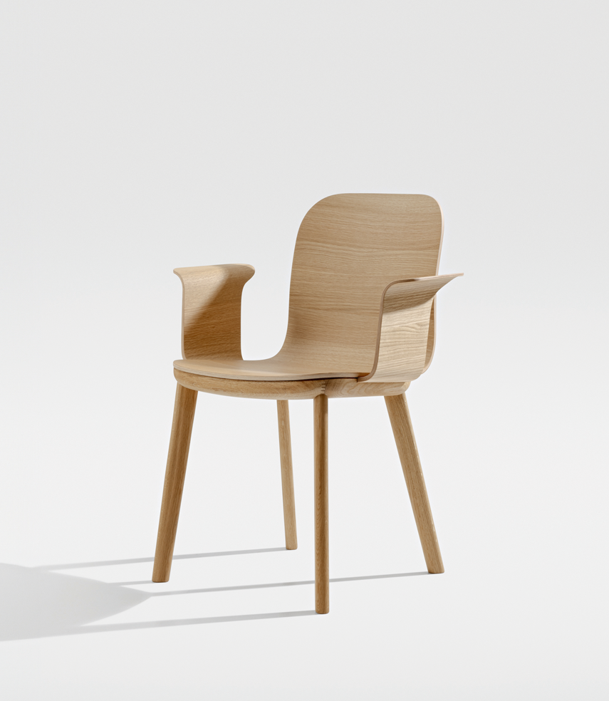 AEON COMFORT is ready to take off. The armchair celebrates the interplay between volume and surface. Masterfully blending the flexibility of a moulded wood shell with the stability of a solid wood frame. This fusion not only creates a harmonious design but also achieves an optimal balance between form and function: tactile precision meets human-centric design. The solid wood construction supports the curved seat shell and the wing-like armrests with remarkable lightness, enhancing a high level of comfort and freedom of movement for every user.