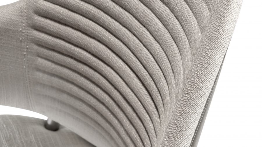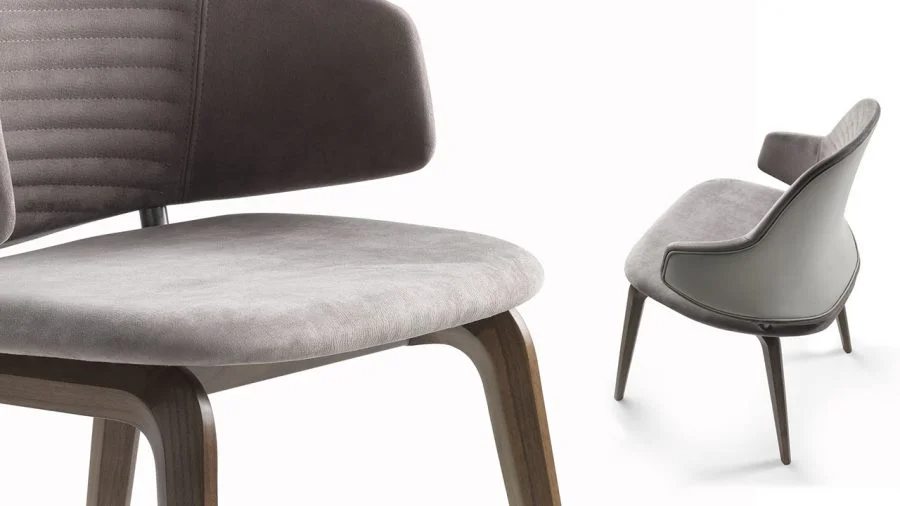 hair with shell in resin and wood with upholstery in leather or fabric and internal back with quilting.