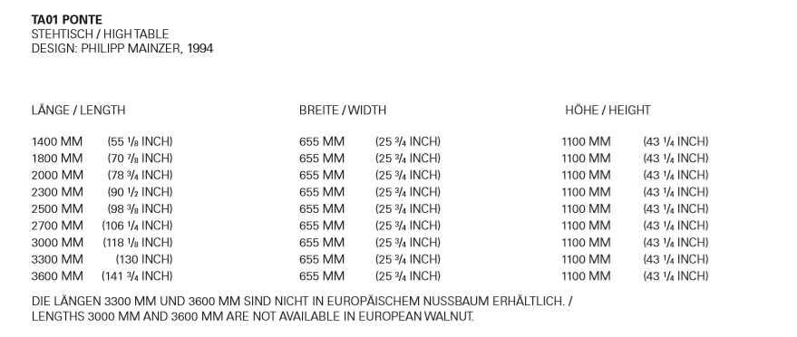 The table PONTE is one of the first e15 tables and a real classic. Its archetypical form and distinct corner joint detail account for the special allure of this table. PONTE is especially suitable as a working or conference table, and alongside the e15 office aluminium products provides all the required functions. The table PONTE is also available in European walnut up to a length of 3000 MM (118 1/8 INCH).