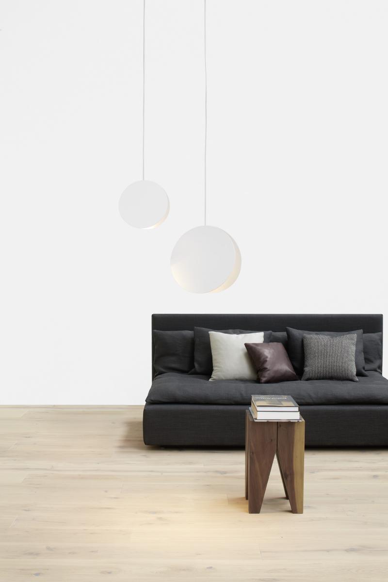 Generating an intriguing display of light and form NORTH is a poetic light with distinct underlying simplicity. Reduced to a core circular shape, the light playfully signifies abstract geometry or lunar phases, changing its appearance depending on the viewer’s perspective.