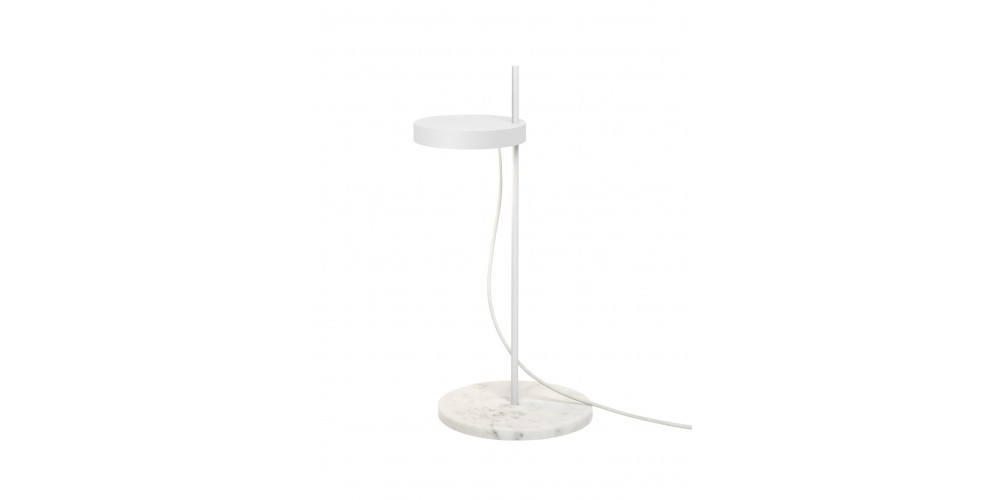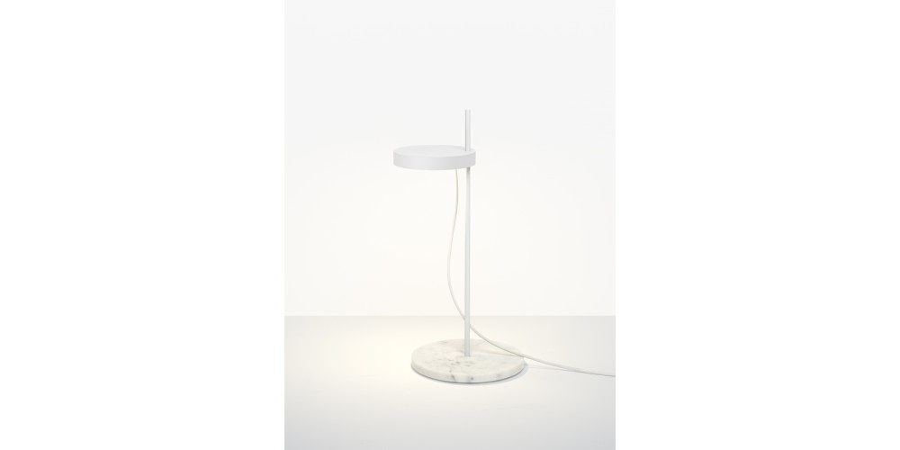 The table light PALO elegantly offers smart solutions for table or bed side reading. The visible cord lends a casual and dynamic edge to the precise form of the light. The solid oiled marble base in Bianco Carrara or Nero Marquina luxuriously enhances the purity of the defined forms of this light.