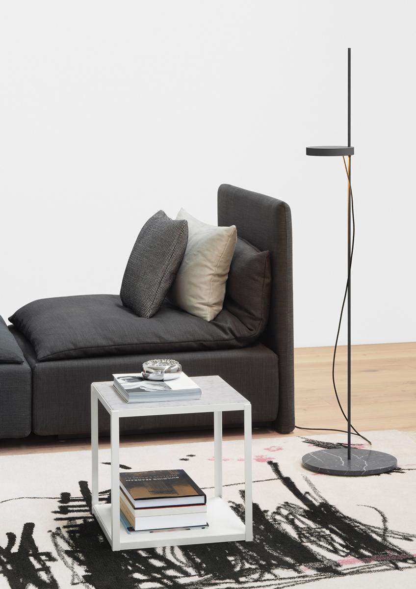 PALO is an innovative and flexible floor light suitable for reading and lounging. The visible cord lends a casual and dynamic edge to the precise form of the light. The solid oiled marble base in Bianco Carrara or Nero Marquina elegantly enhances the purity of the defined forms of this light.