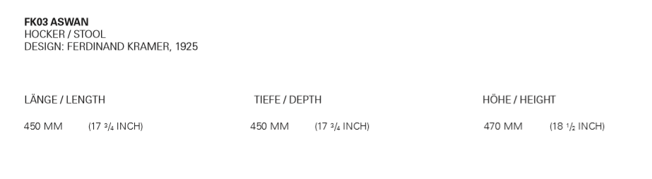 The simple and elegant stool ASWAN features a hand-woven seat surface finished in a textile band or vegetable tanned leather, which is luxuriously soft and will patinate with exposure to direct light. Inspired by Egypt and hence the name, ASWAN is a clear example of Ferdinand Kramer's alluring appeal in his designs of functional and compelling pieces. The stool ASWAN is available in waxed solid European oak or European walnut. The versatile character of the linear stool allows for an application in diverse environments, either as a stand-alone piece or also in combination with other furniture from the e15 collection. For additional stability, the stool's frame is fitted with a steel profile. ASWAN is delivered as one piece.