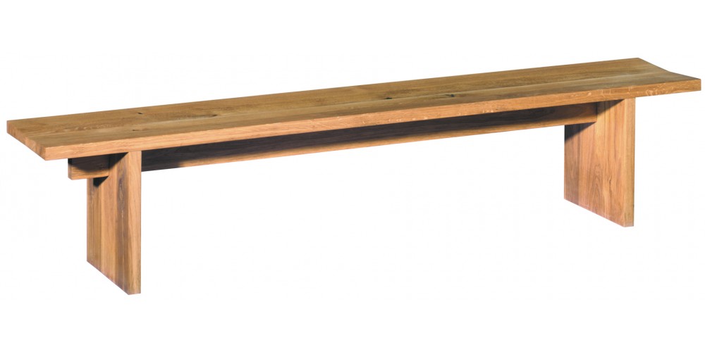 The sides of bench TARO are pushed slightly inward to enhance stability, therefore this bench can be offered in a standard length of up to 3600 MM (141 3/4 INCH). The wood is 40 MM (1 5/8 INCH) thick and the top tapers toward the middle for comfortable sitting. This bench, with its clean lines is made of three boards and works well in combination with the tables BIGFOOT? and JAPAN. TARO is delivered as on piece.