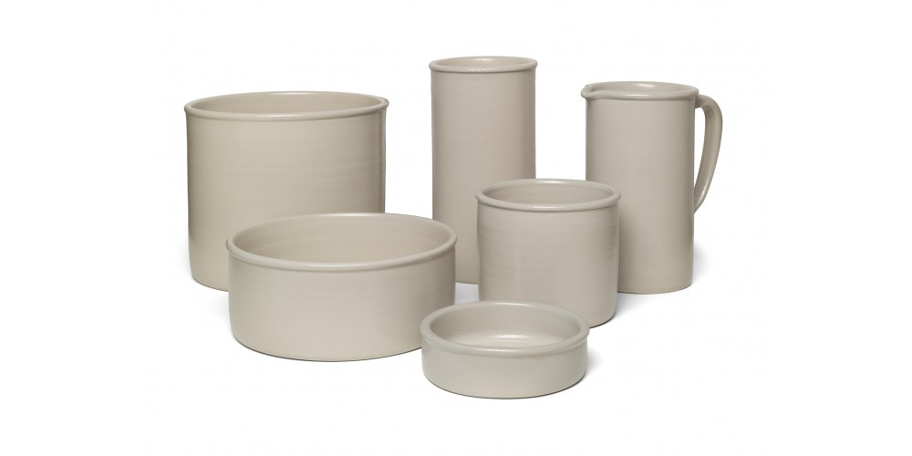 Inspired by traditional pottery from the Frankfurt region, stoneware series SALINA combines modern design with handcrafted production methods. Reduced to the essentials, the cylindrical forms elegantly highlight the beauty of the material, which develops a unique texture through the treatment with salt. Each piece is handmade in a small workshop in the Southwest of Germany and carries the signature of the potter as well as an e15 logo at the bottom. The SALINA series consists of six impermeable forms open to individual usage.
