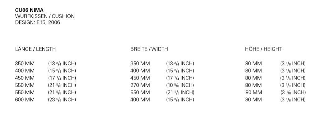 The accessory cushion NIMA is available in six different dimensions and a variety of fabrics from the e15 range. It provides extra seating comfort complimenting the sofas SHIRAZ and KERMAN designed by Philipp Mainzer and Farah Ebrahimi as well as the Stefan Diez seating series including the lounge chairs BESSY and EUGENE.