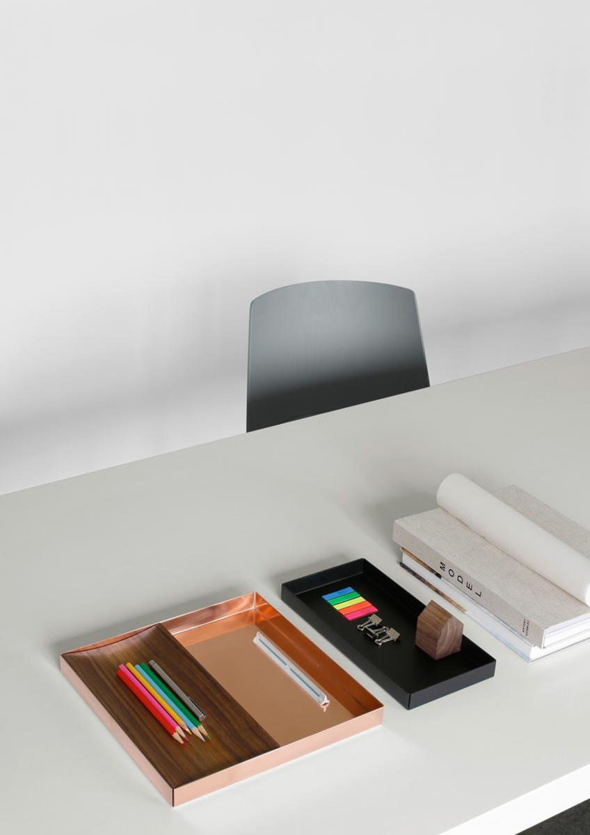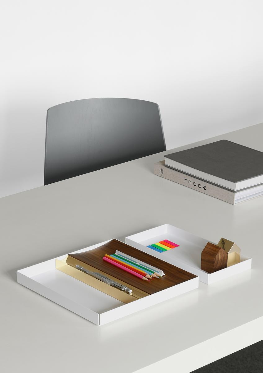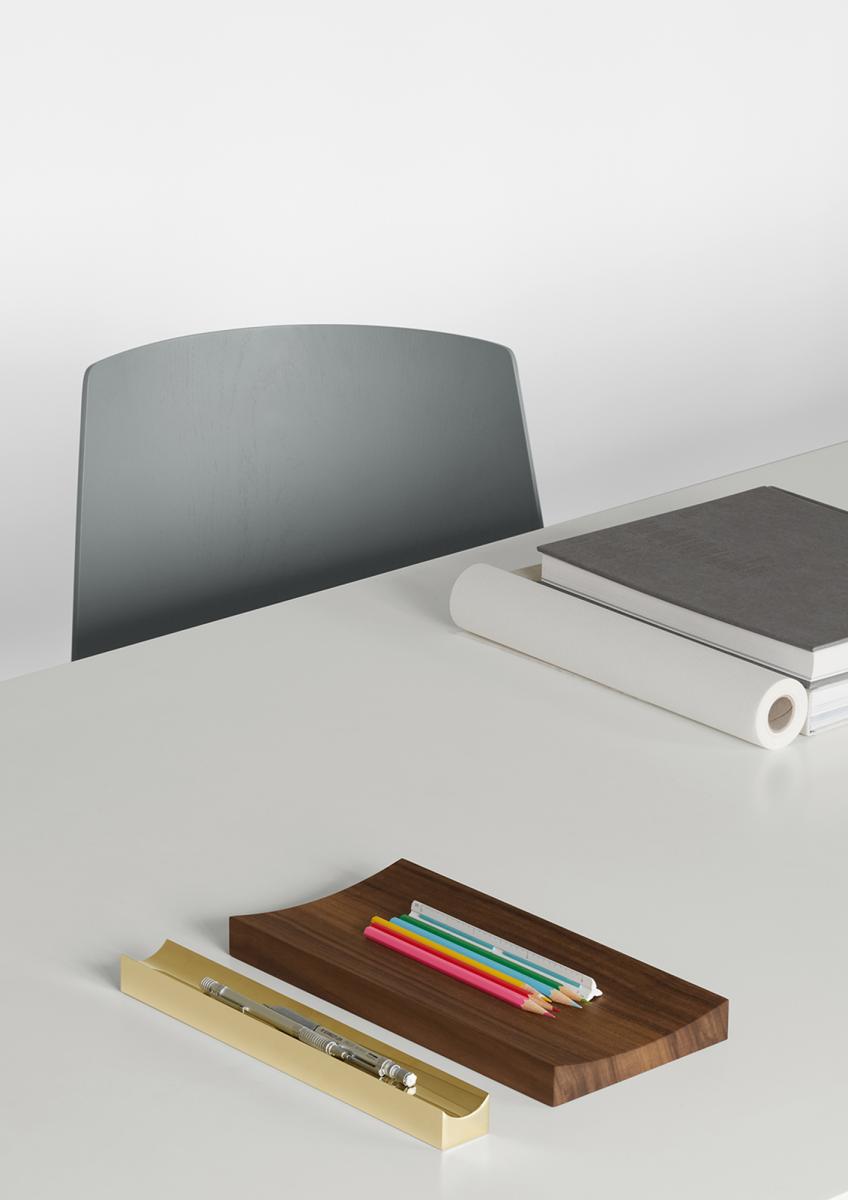 The tray PEN beautifully structures the clean desk and office setting. Complementing the tray ITO, PEN is available in three different widths, holding and displaying pens and other stationary items. Available in solid European oak and walnut as well as luxurious polished brass, PEN is a precious item for any desk, celebrating the traditional way of writing and drawing.