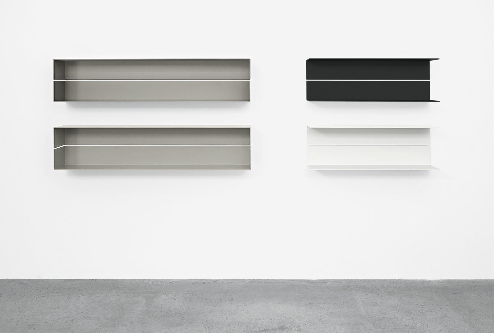Evoking associations with minimal art, the wall-mounted shelf PROFIL by J?rg Schellmann bears a distinct sculptural appeal. The aluminium shelf is produced in one piece by way of extrusion; a process used to create objects of a continuous cross-sectional profile, forming finished parts with excellent surface quality. Available in powder-coated aluminium in signal white, silk grey or jet black and optionally available with or without side panels, PROFIL offers multiple colour and composition solutions and is available in three lengths.