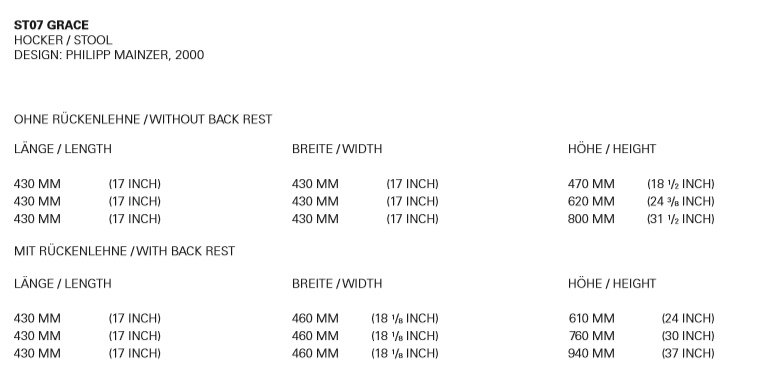 The base of GRACE is constructed of 15 x 15 mm (5/8 x 5/8 inch) brushed stainless steel legs with four cross beams. The seat is shaped with a radius to provide comfort. The clear lines and the large seat of this stool offer an elegant appearance while GRACE can be used from two sides. GRACE is available in three different heights and is delivered as one piece.