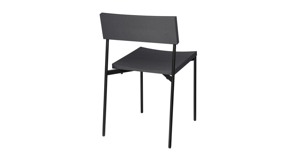 Chair HENNING with its minimal and linear silhouette unifies a shaped solid wood seat and backrest with powder-coated steel or brushed stainless steel frame. HENNING is a comfortable and elegant stackable chair that serves various interior purposes.