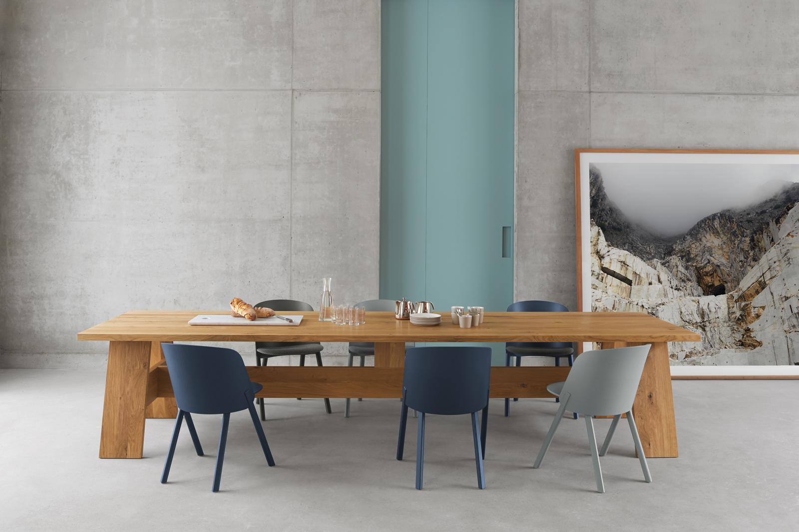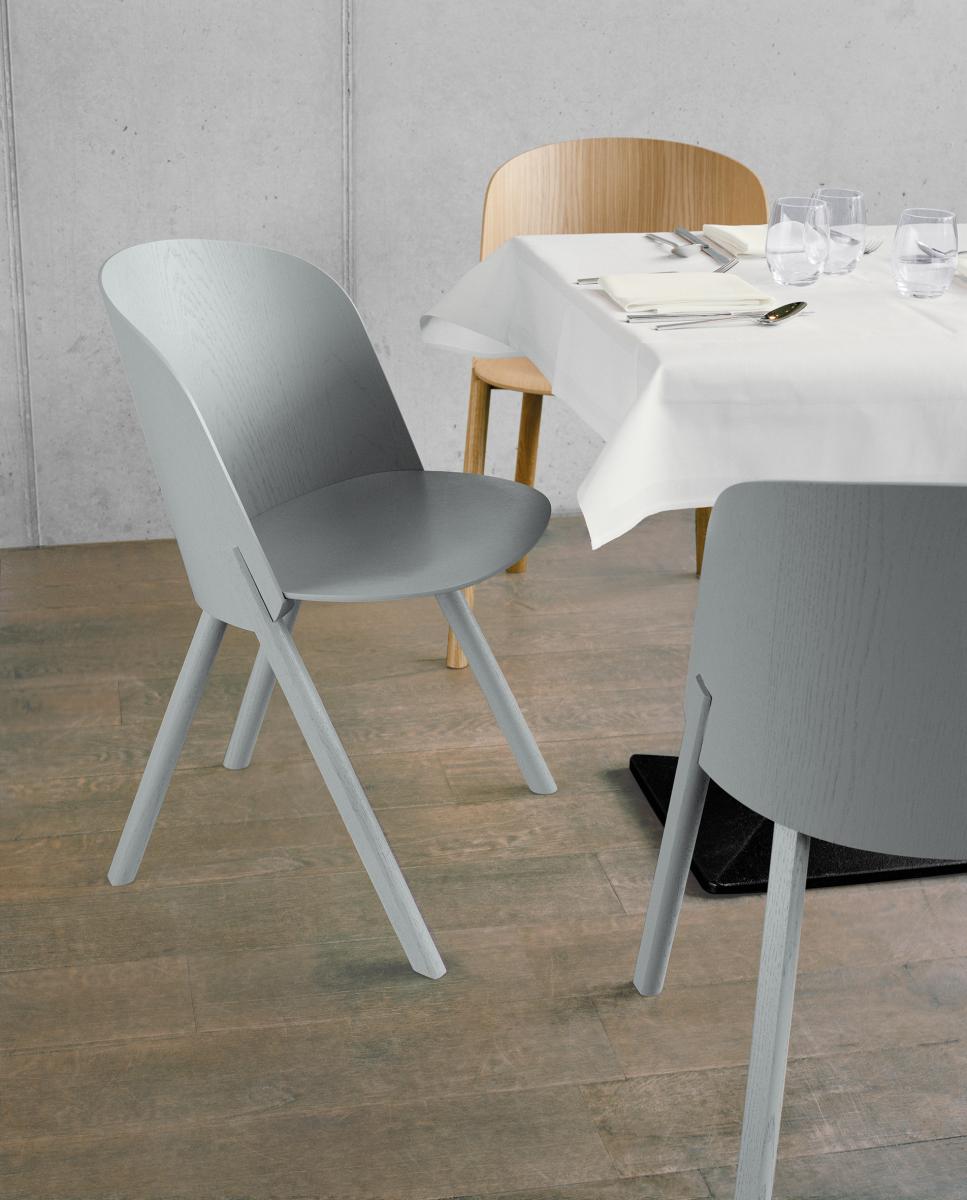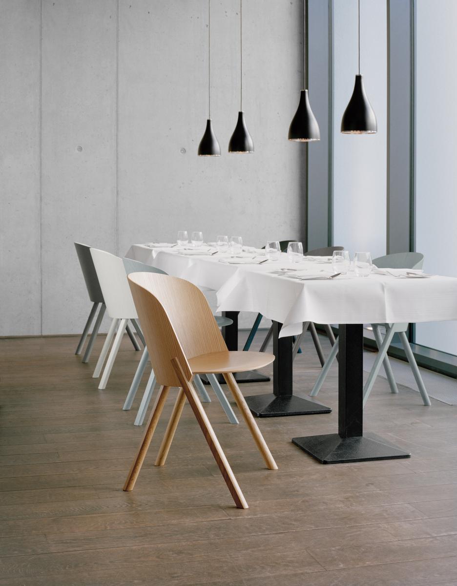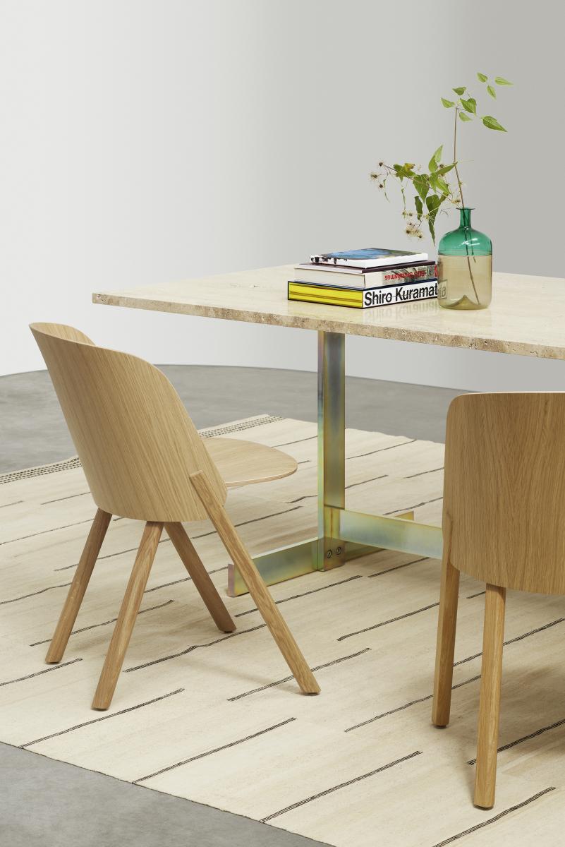 The chair THIS is in the oak veneer, clear lacquered version also available at the e15 online shop.