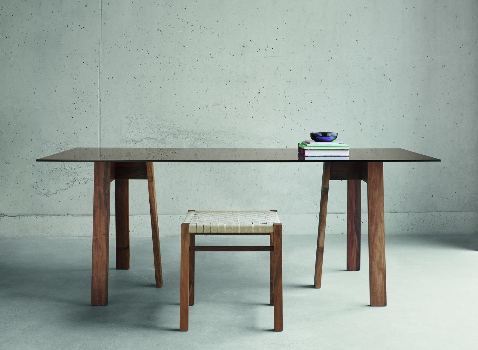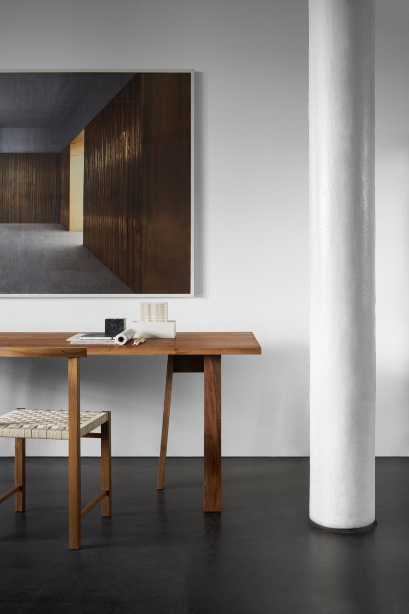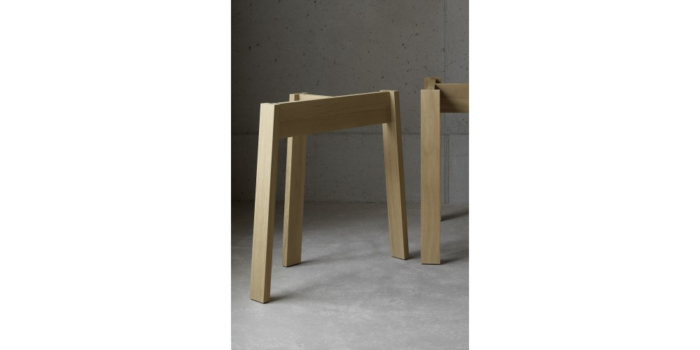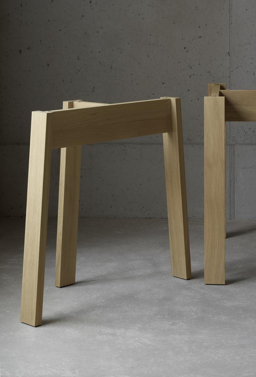 e15 continues its collaboration with David Chipperfield with trestle table BASIS. The simple and qualitative design of the solid wood trestles constructed with traditional joinery techniques showcases a broad range of materials and flexible solutions for living and working. Table tops are available separately in solid wood, glass and solid core HPL.