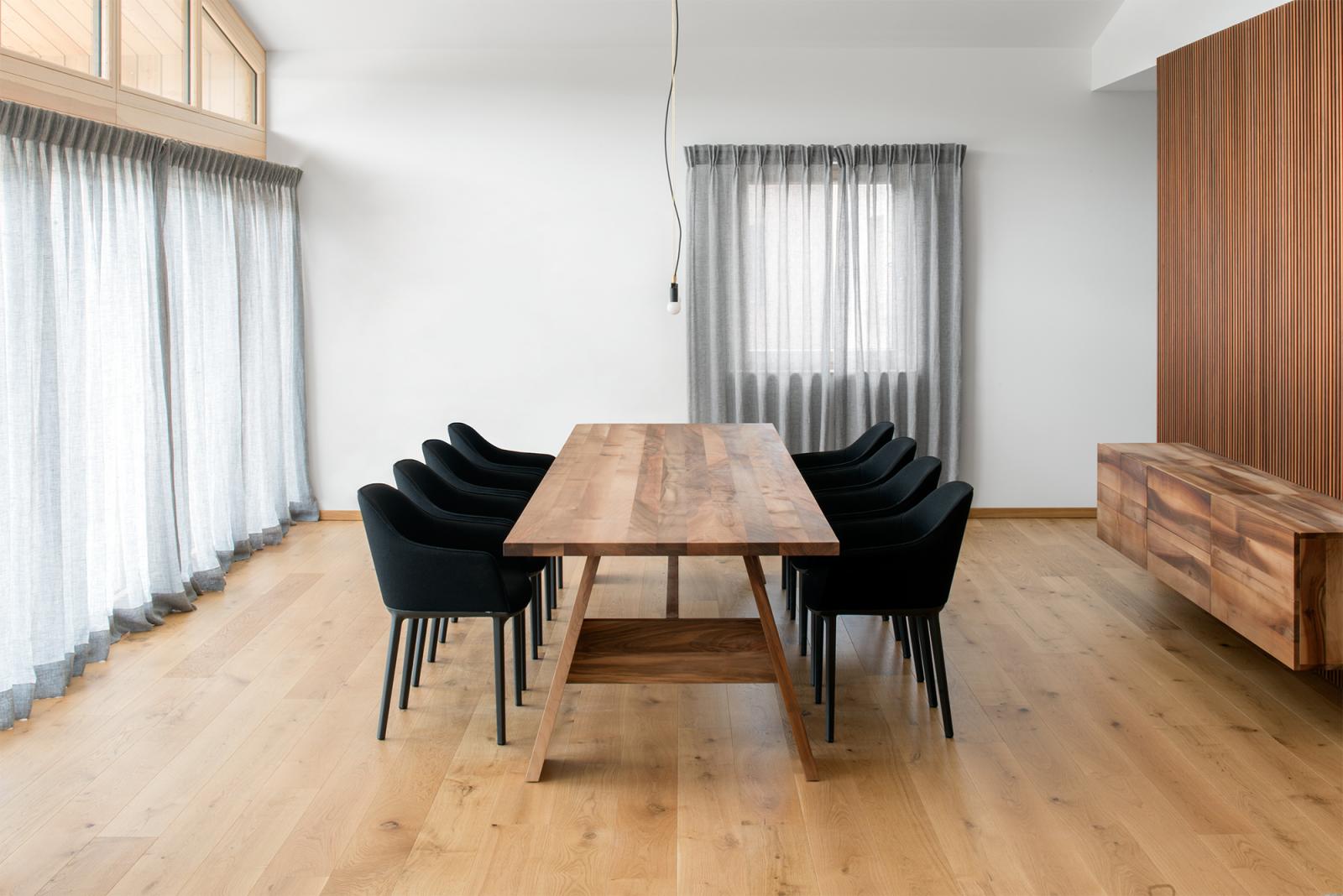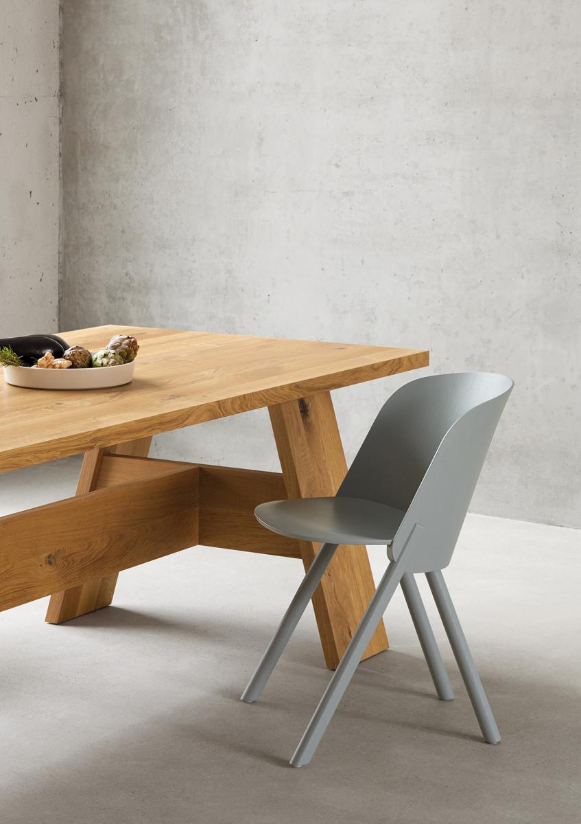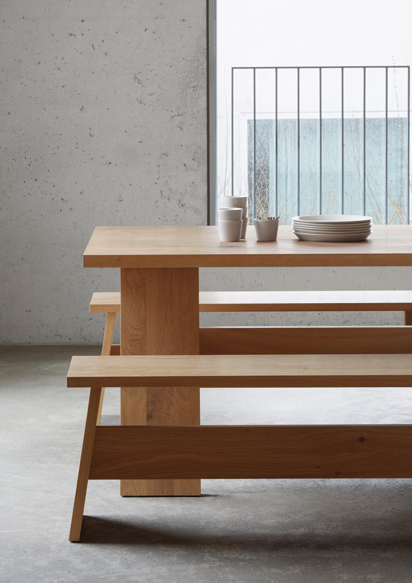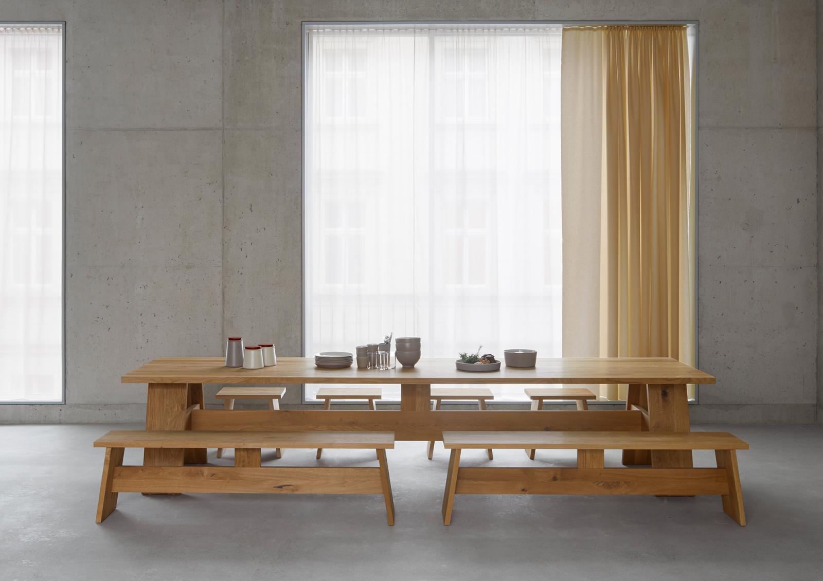 Originally conceived for an architectural project in the English countryside, table FAYLAND features the pure use of material and a clear design language, which are shared aesthetics of e15 and David Chipperfield. Made of solid wood, the constructive details are at the core of its refined and elegant design: a horizontal bar with centred support provides stability while the table ends overlap the frame, providing additional seating space. In addition to European walnut and solid oak in oiled or white pigmented surfaces.