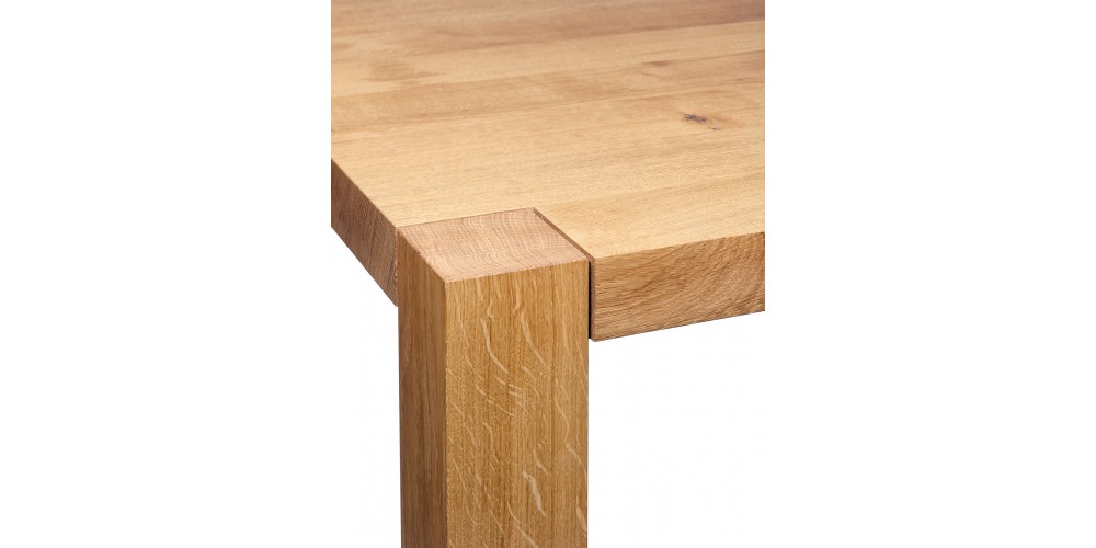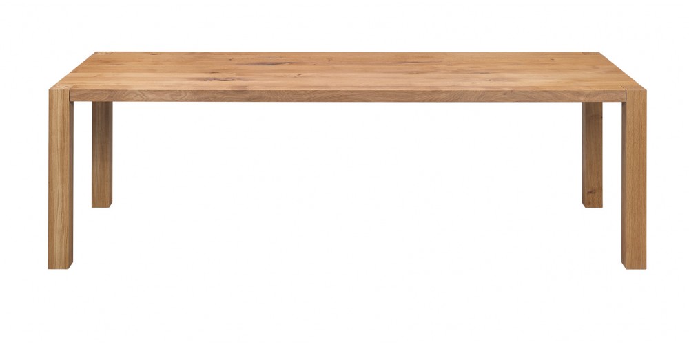 Characterised by square legs intersecting with the 50 mm tabletop, table HOLBORN is as a modern interpretation of e15’s iconic table BIGFOOT?. A structure incorporated into the tabletop provides high stability while the harmonious proportions of table top and legs result in a pleasing silhouette featuring the end grain of the wood. The refined and elegant dining table HOLBORN made from solid European oak or walnut is available in twelve different lengths.