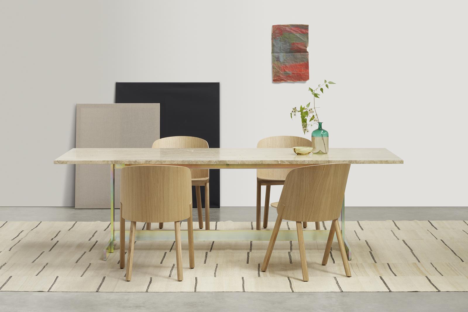Inspired by Suprematist compositions, table KAZIMIR by Philipp Mainzer features a bold mix of geometric forms and materials. Focussing on a distinct construction, the tabletop made from solid European oak or walnut rests on a metal centre base, allowing for various interpretations in private and public spaces. Available in a range of standard and custom colours as well as exclusive materials such as galvanised zinc, blackened steel and brushed brass, the frame features a characteristic refectory table construction, which provides stability for tables up to 3600 MM (141 3/4 INCH) and generous seating at the table ends. KAZIMIR is also available in a ‘RAW’ version, featuring solid wood boards with a width of up to 250 MM (9 7/8 INCH) exposing the brushed natural edges of the tree.