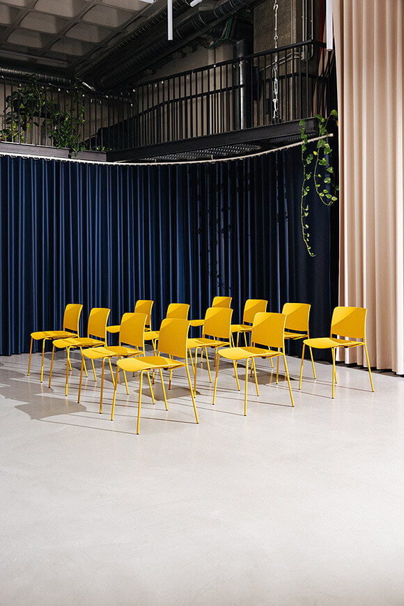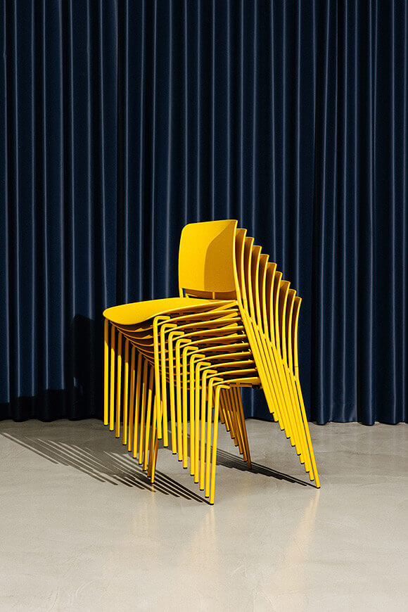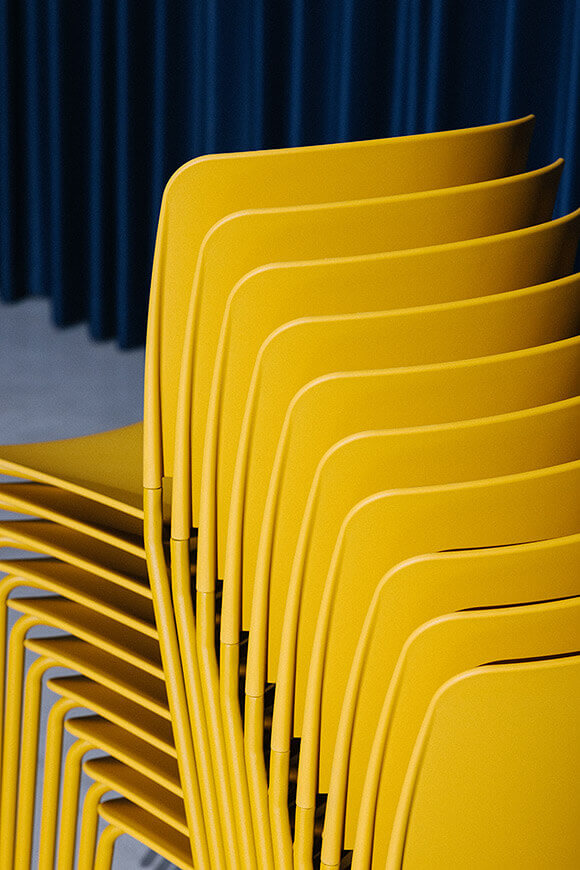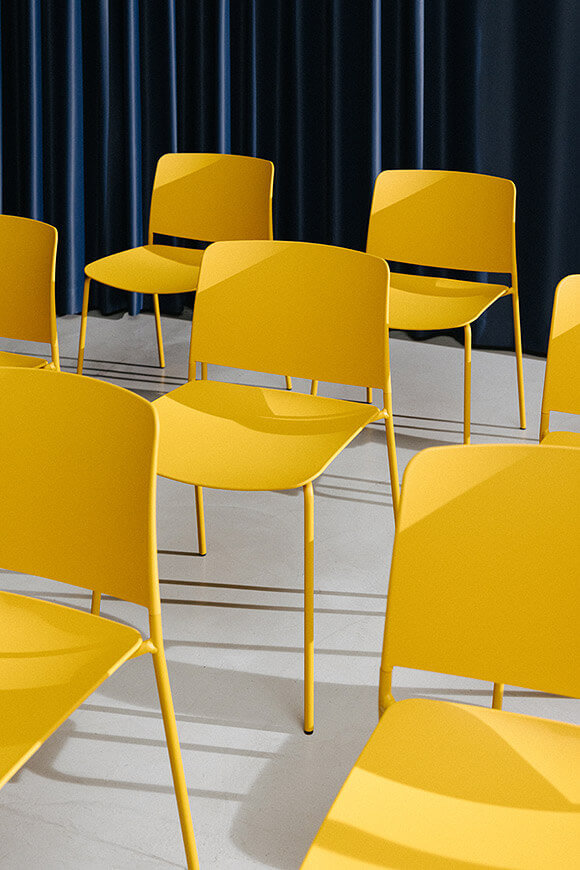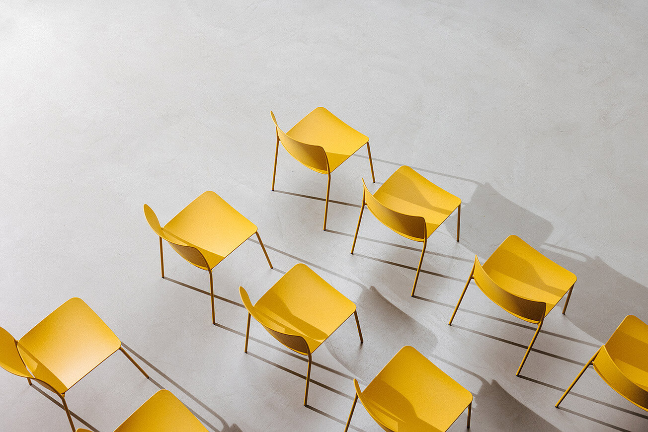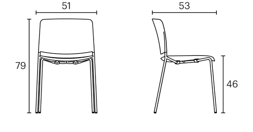 The Leku 4L chair features a polypropylene seat and backrest and a four legged steel frame lacquered in any of our colours. It is a stackable, lightweight and versatile chair that can be part of a home kitchen or dining room, but can also fit perfectly into any space in the contract and restaurant sectors.
