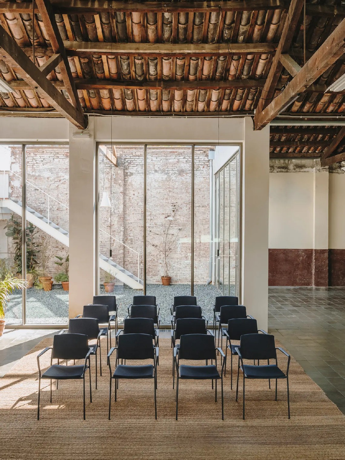 Ema 4L armchair is strong and lightweight and allows to stack up to 30 units, which makes it perfect for all kind of spaces, in special for contract sector. The 4-legged steel structure and the aluminium armrests can be chromed/polished or lacquered in any of our colours and the seat and backrest are available in polypropylene or upholstered. Besides, it has an upholstered seat pad available, which is very useful for multipurpose or crowded spaces, improving stacking by causing less friction than the full upholstery version. In this case, the stackability reaches up to 20 units on the trolley and 15 units on the floor.
