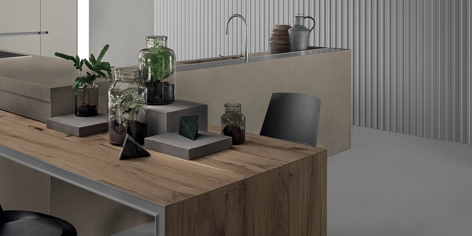 這種拉伸型中島或島臺式餐桌是 Icon 系列中的主打產品。EVOLUTION 可以采用各種材料和飾面進行個性化設計,縮放即為理想的 snack top,伸展開來便可作為餐桌。可用材料包括:ICONcrete、石英、木材、Corian?、piasentina 石材、瓷磚石。這種餐桌還有 Annex 固定版型。