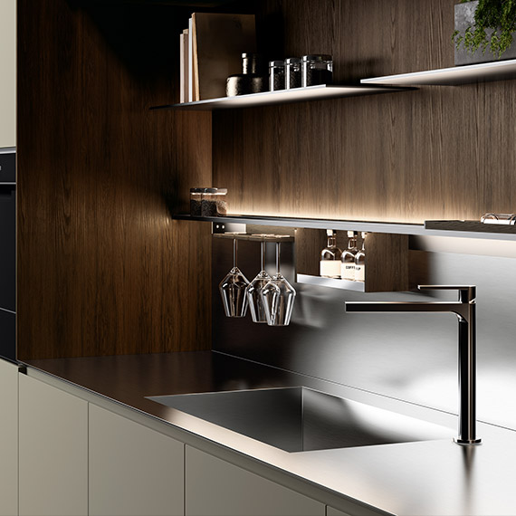 該廚房,具有勻稱且風(fēng)格極為獨(dú)特的外觀,將簡單的形狀、圖案、材料以及對細(xì)節(jié)方面工匠般的關(guān)注融為一體。