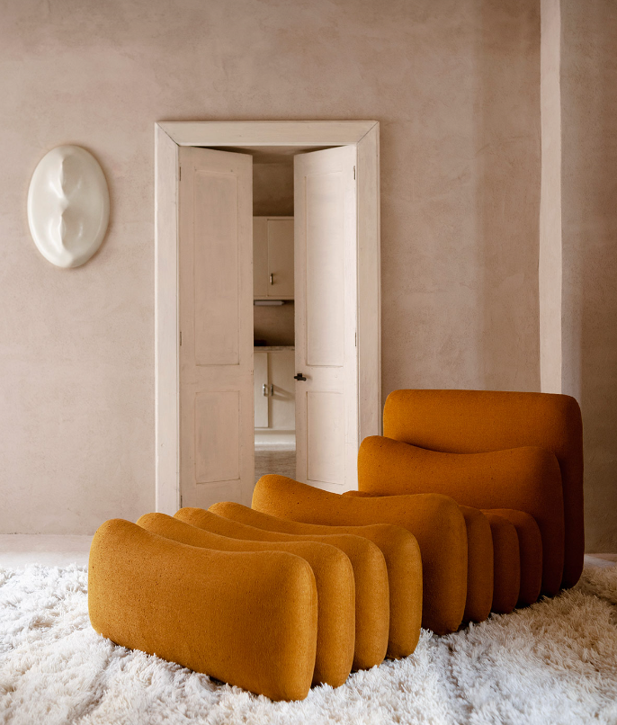 Modules with unusual shapes give life to original seating configurations where aggregation and variability take center stage. Additional System is a project by Joe Colombo from 1967, reimagined today by Tacchini while respecting its original spirit: a modular system with timeless allure, still “futuristic” even 50 years later. Cushions of six different sizes, inspired by ergonomic studies of the 1960s, come together in dynamic and flexible combinations created by varying the number of elements and how they are positioned. Additional System is available in armchair, pouf, and daybed versions.
