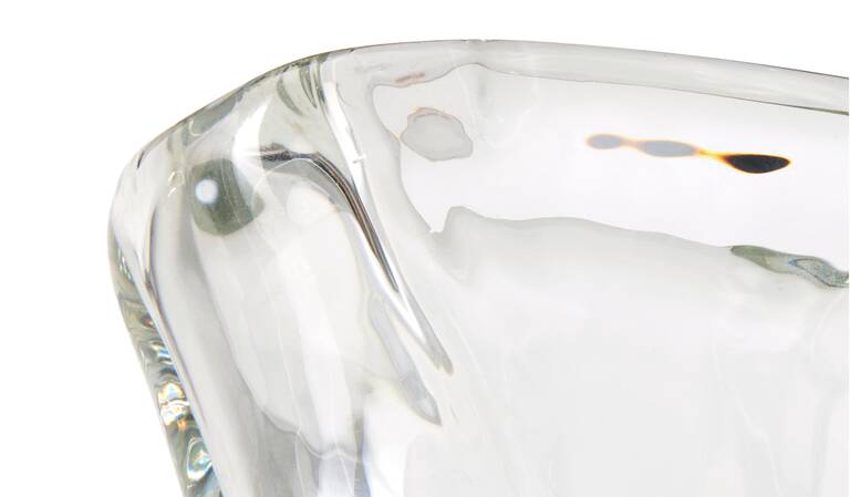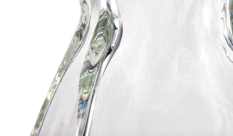 Charlotte Perriand于1940年至1942年間活躍在日本,應工商部的邀請,她負責為日本的工業生產確定新的方向和戰略。Vase à fleurs échancré就是這一創作時期誕生的,在此期間,現代主義先鋒與東方手工藝傳統及其主角展開了一場對抗。此花瓶是一件雕塑感的作品,采用模具吹制玻璃和手工再加工而成,每一個花瓶都是獨一無二、不可復制的。刻意設計的不規則形狀、柔軟的表面紋理和厚實的圓邊都彰顯了該作品的材質感。