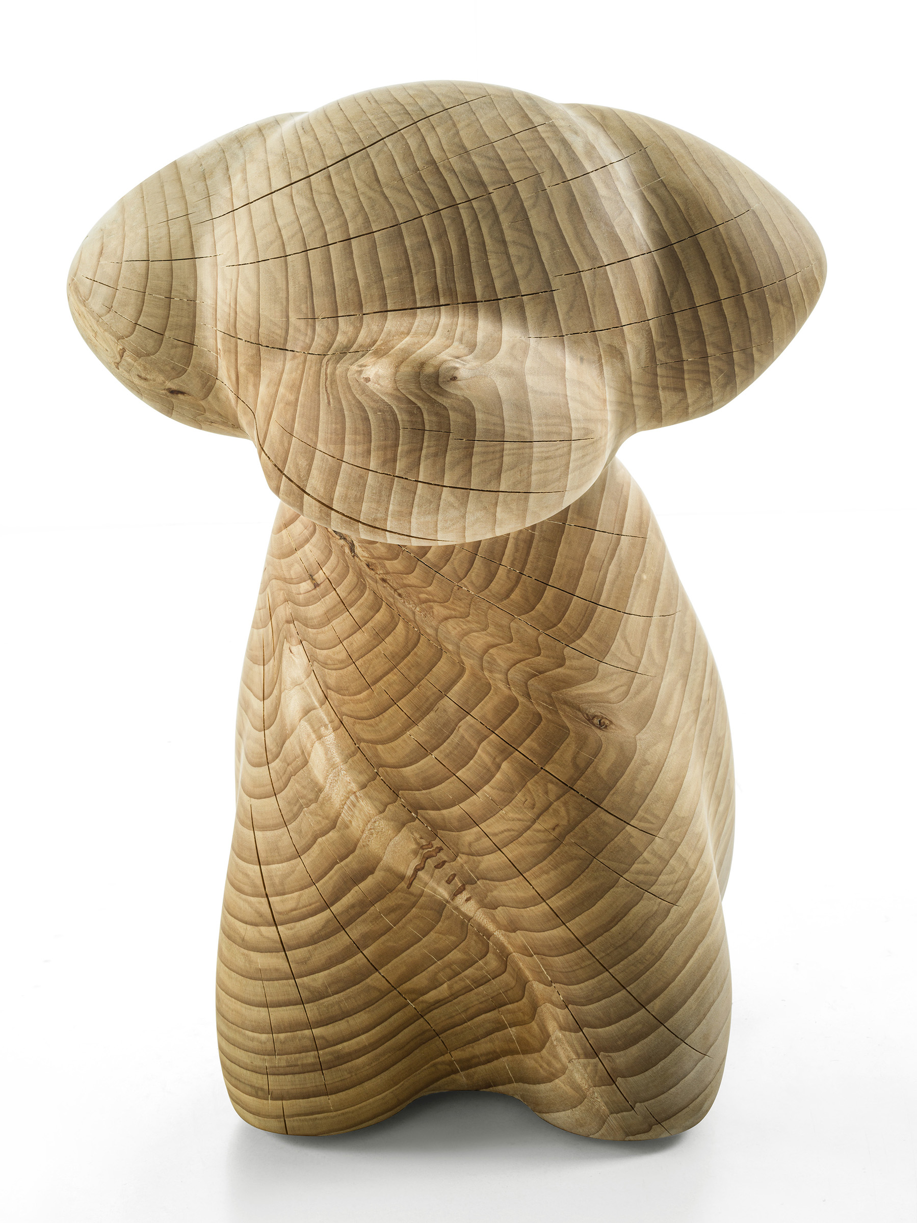 Complemento d’arredo in legno massello di cedro profumato lavorato da un blocco unico, il cui design scultoreo si ispira ad un cane di razza maltese.