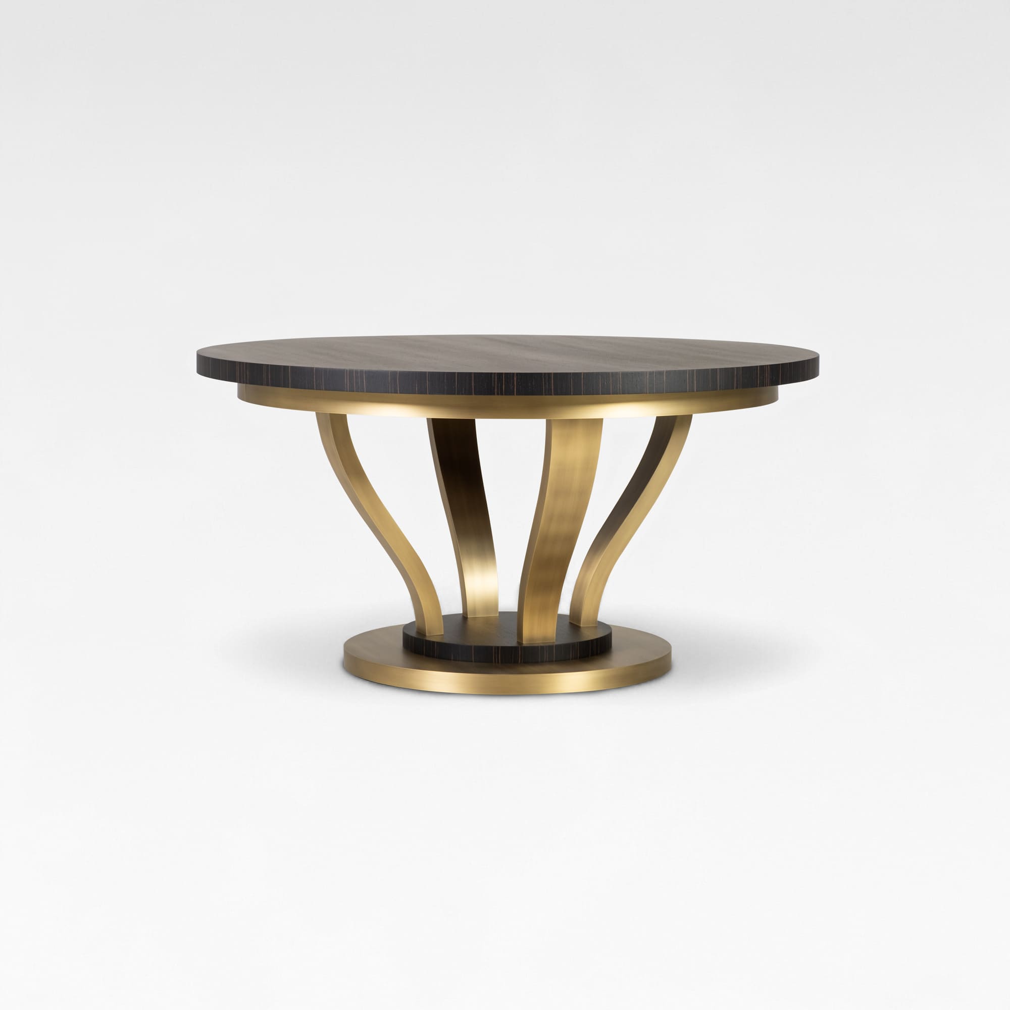 The Fontaine dining table is named after Jean de La Fontaine, the renowned French poet and fabulist, whose timeless literary works captured the essence of storytelling. Inspired by the Art Deco movement, this piece features a sculptural base with graceful curves, evoking a sense of harmony and refinement. Handcarfted from exquisite materials, the Fontaine dining table is a statement of luxury, designed to elevate sophisticated interiors.