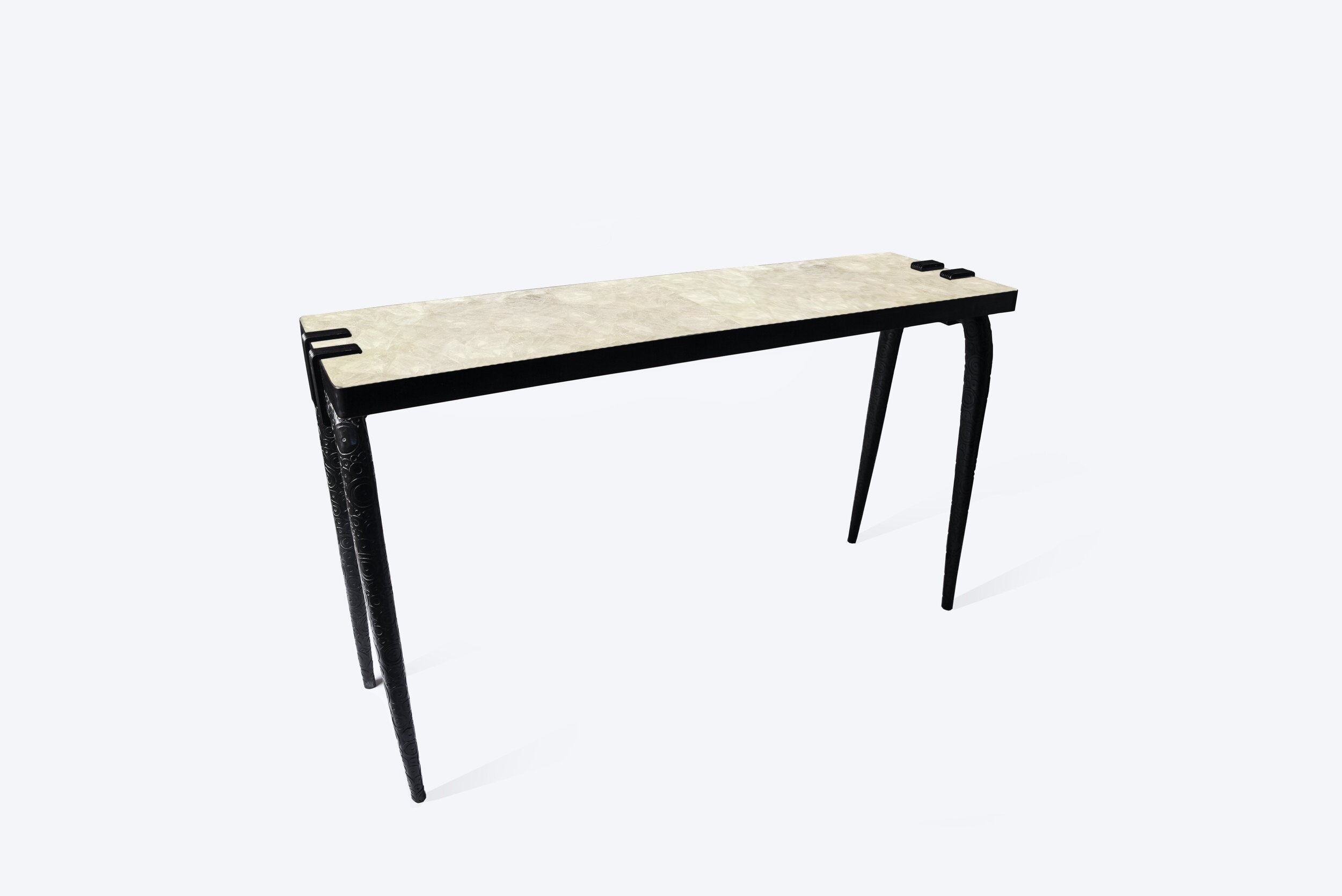 The iconic console is the perfect statement piece for any room. The circle inlay work on the legs makes this piece unique even more incredible.